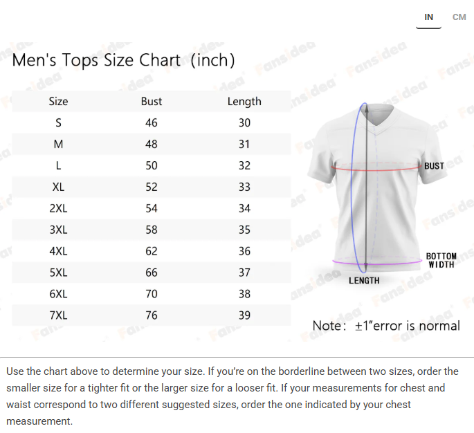 JERSEY DETAILS: Size Chart is in the pictures, Sizes available S - 7X